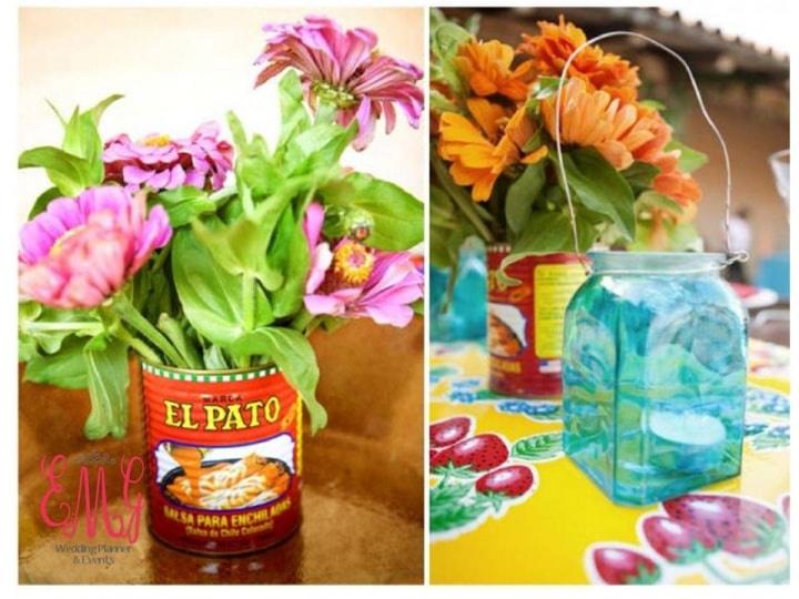 Al tener una connotación con lo retro te podrá reducir hasta el presupuesto designado como por ejemplo: para la vajilla de cada una de las mesas de invitados, que como sugerencia puede ir desde los platos, vasos, cucharas, tenedores, copas de la abuela, hasta trastes de plástico o peltre con el toque mexicano que nos caracteriza.