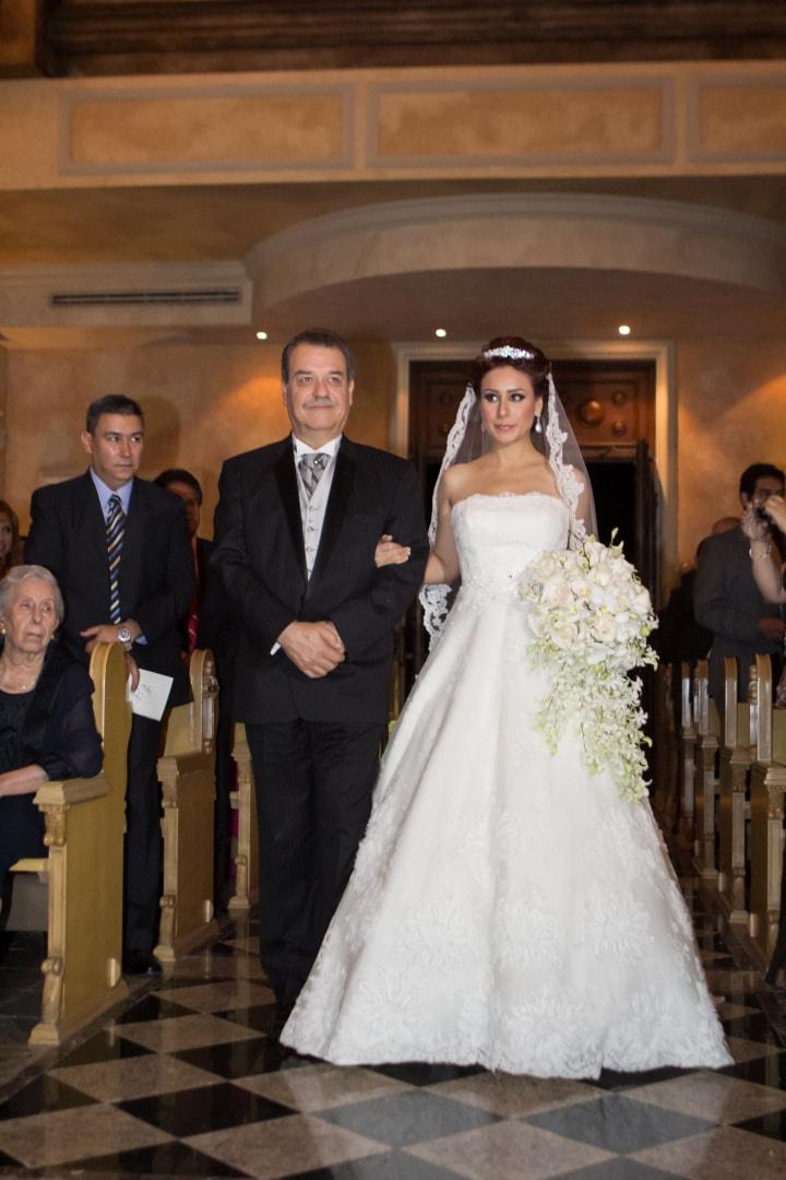 - Ni muy arriba ni muy abajo. La altura ideal de llevar tu ramo es a la altura de las caderas y manteniendo su vista siempre hacia adelante, trata de aprovechar la belleza de tu elección en las flores, el estilo y el color para lucirlo con toda su belleza, se trata de un complemento a tu atuendo de novia y un detalle que te hace lucir más coqueta y femenina por lo cual funciona muy bien que imagines que se dibuja un trángulo con él y tu cuerpo al dejar el codo semiflexionado pero relajado hacia un costado.